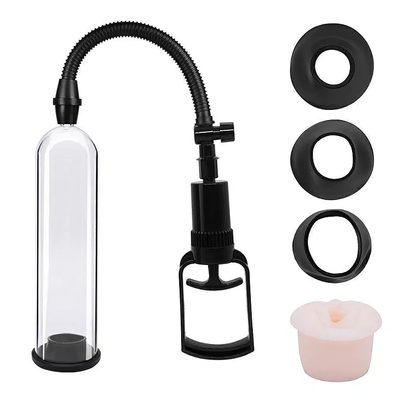 Bomba Peniana Manual com 3 Aneis de Silicone + 1 Anel em Formato Vagina